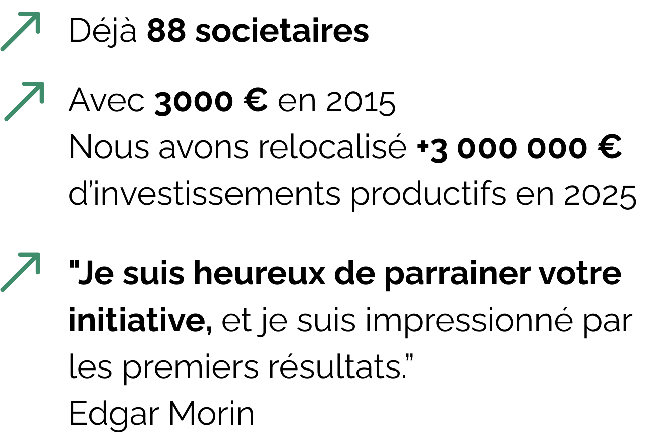 En savoir plus sur ce projet d'investissement et son impact ? Sur sa possible défiscalisation ? Sur les façons de devenir sociétaire de notre coopérative ?